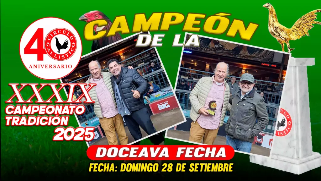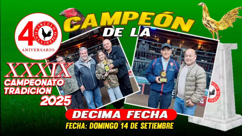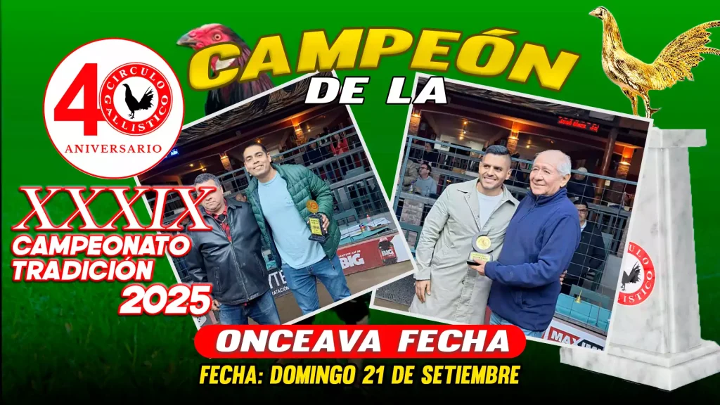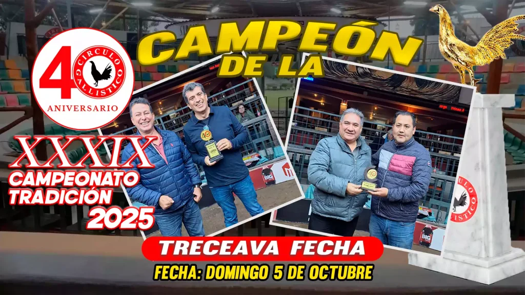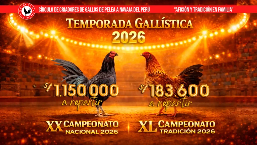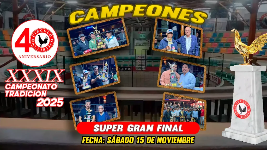 Los campeonatos del Círculo Gallístico del Perú reúnen a los mejores criadores y competidores en un escenario de tradición y pasión. Vive nuestros eventos y sé parte de la historia en cada torneo oficial.
