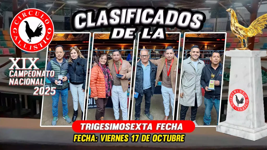El viernes 17 de octubre, el Coliseo del Círculo Gallístico del Perú, ubicado en Lurín, fue nuevamente escenario de una apasionante jornada del XIX Campeonato Nacional 2025, donde se vivieron grandes enfrentamientos, momentos de intensa emoción y nuevas clasificaciones rumbo a la gran semifinal.